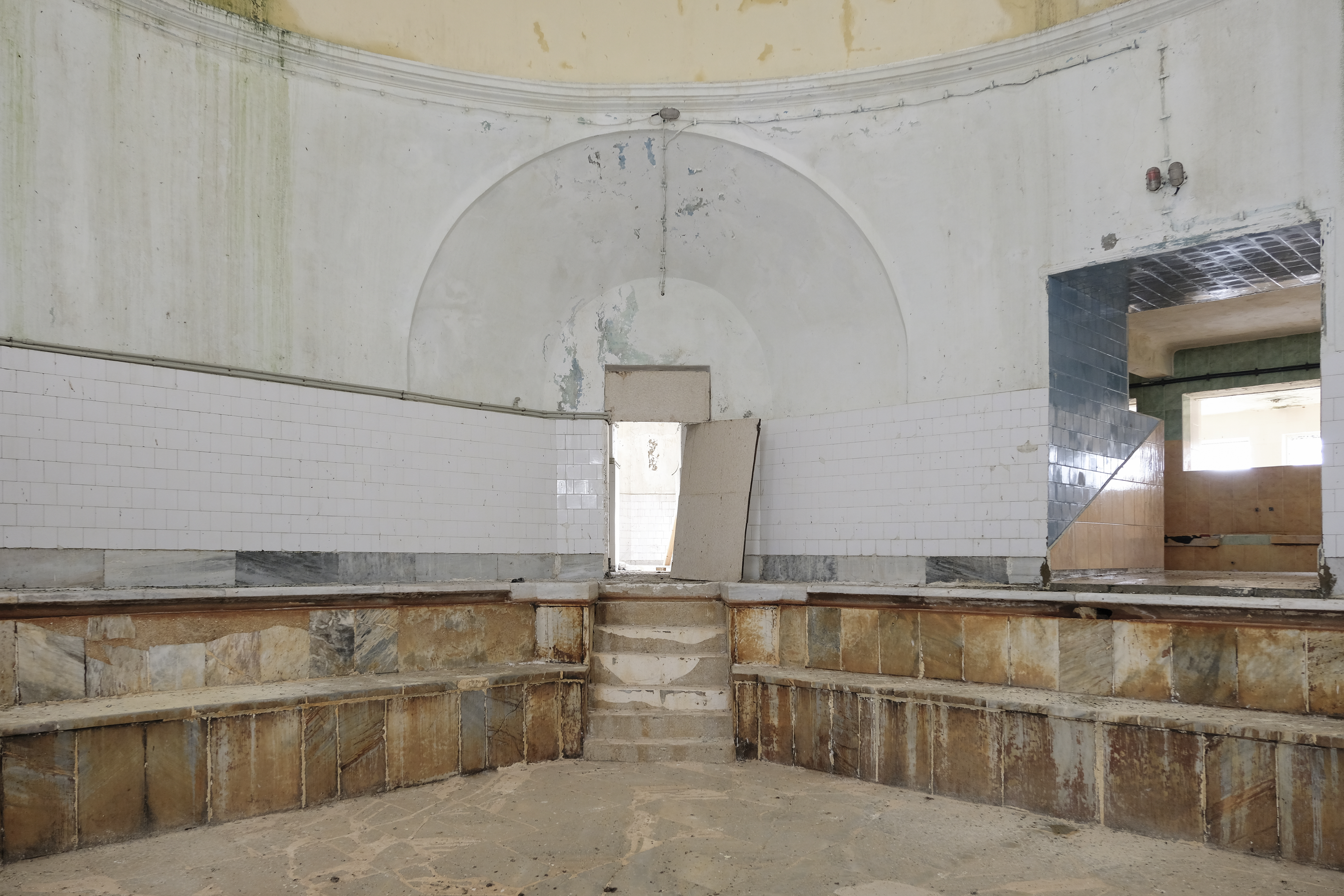 Големият басейн в женското отделение с входове към терапветичния басейн и курните.